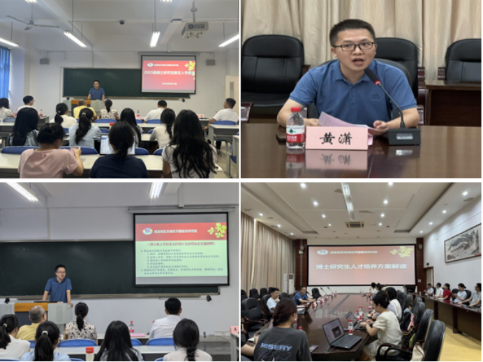 研究院副院长黄潇代表研究院对全体新同学的到来表示欢迎,向大家开启研究生阶段求学旅程致以祝贺。首先,他对研究院概况和硕博人才培养方案做了全面详细的介绍,重点针对学分要求、科研成果要求、人才培养环节流程等方面做了强调。随后,他结合科研诚信教育对新生的学业之旅提出要求:一是研究生阶段是学术道路上的重要跨越,要做到坚守学术道德,恪守科研诚信,防微杜渐,提升自我科学素养。二是不仅要吃透课本现有知识,更需要从课堂外挖掘知识,不断提高发现问题、分析问题、解决问题的能力。