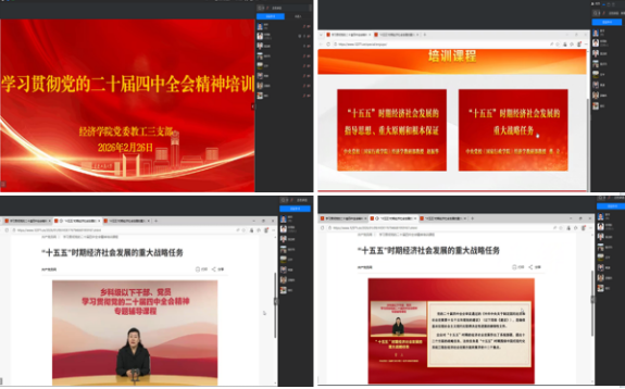 此外,支部同步开展科级及以下干部、党员学习贯彻党的二十届四中全会精神专题培训,组织全体参训人员认真学习“十五五”时期经济社会发展的重大战略任务,切实把思想和行动统一到党中央决策部署上来。至此,此次系列培训课程全部顺利完成。