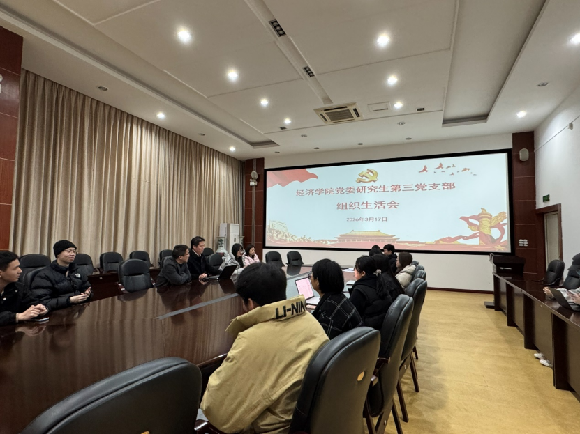 经济学院党委研究生第三党支部于3月17日在田家炳书院6楼会议室开展专题组织生活会,经济学院党委委员、成渝地区双城经济圈建设研究院副院长黄潇到会指导,会议由支部书记刘晗主持,支部全体成员参加。