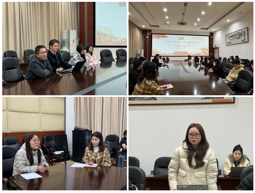 刘晗代表支部委员会进行述职汇报,回顾了过去一年支部工作主要做法,包括:强化政治引领作用,深化党员思想理论;建强党员骨干队伍,彰显先进引领作用;抓实党员教育管理,筑牢纪律规矩防线;凝聚发挥党员作用,助力学生成长发展;贯彻上级指示精神,夯实思想引领基础;深学细悟中央部署,以党建引领科研创新;构筑互动研学载体,拓展活动内涵形式。支部党员对支部委员会上一年度工作进行民主评议,总体评价为好,建议应该拓展组织生活形式,增加外出学习实践活动。刘晗代表支部委员会对支部工作尚存问题提出整改的具体措施,并请支部党员对整改工作进行监督。